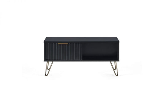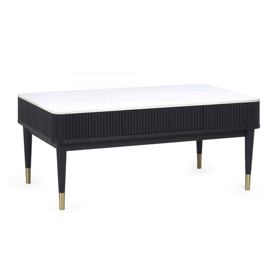 Louis Black Fluted Stone Top Coffee Table with Drawers