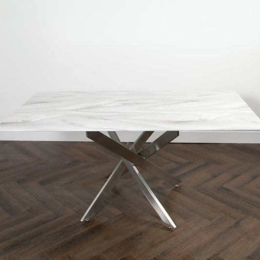 Marble Glass Rectangle 6 Seater Dining Table with Silver Plated Legs