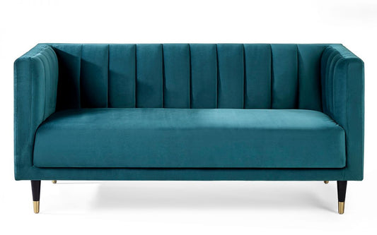 Salma Scalloped Teal Velvet 2 Seater Sofa