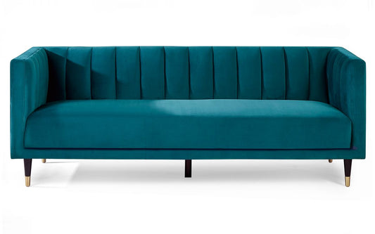 Salma Scalloped Teal Velvet 3 Seater Sofa